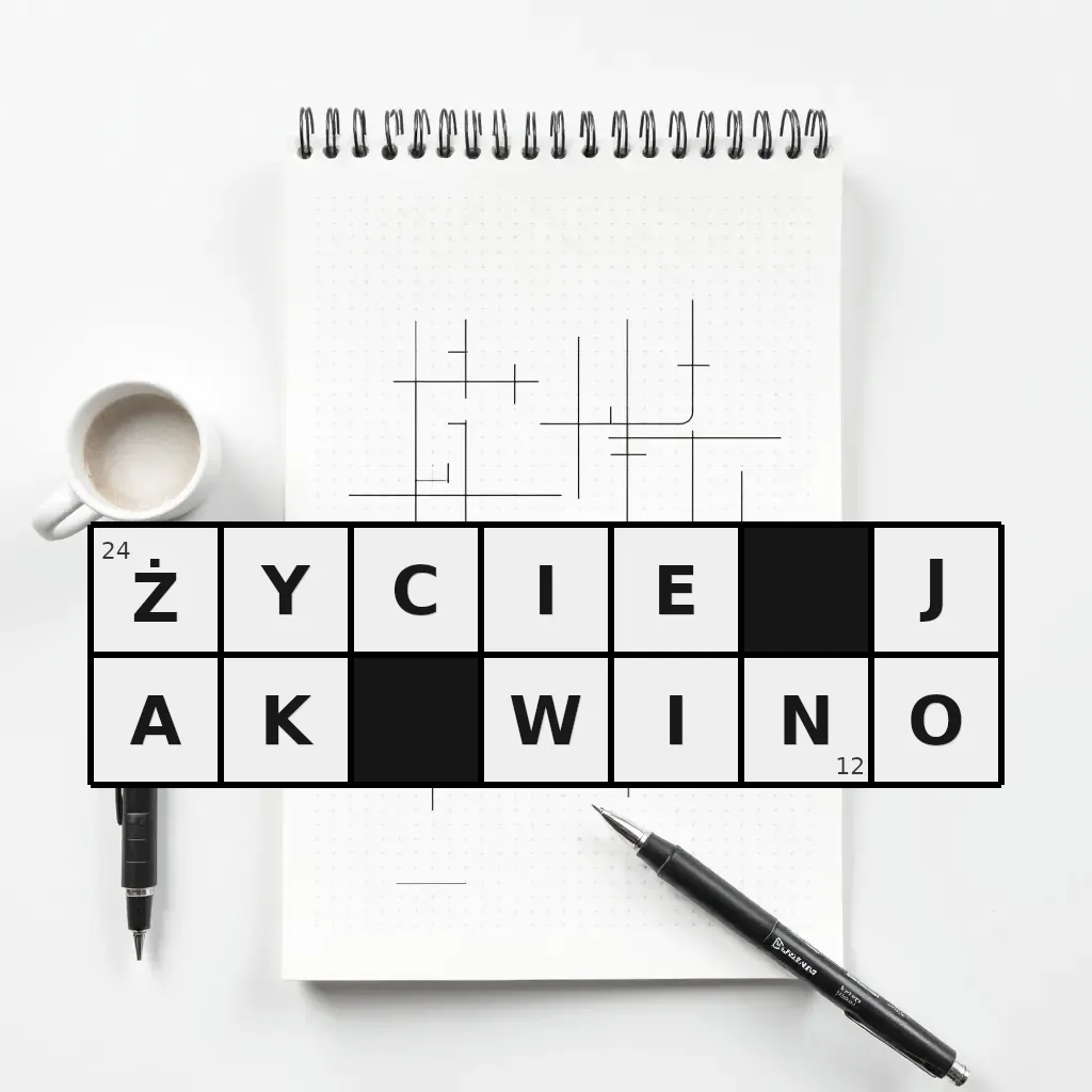 Słowo „życie jak wino” ma 12 znaków (bez spacji i łączników).