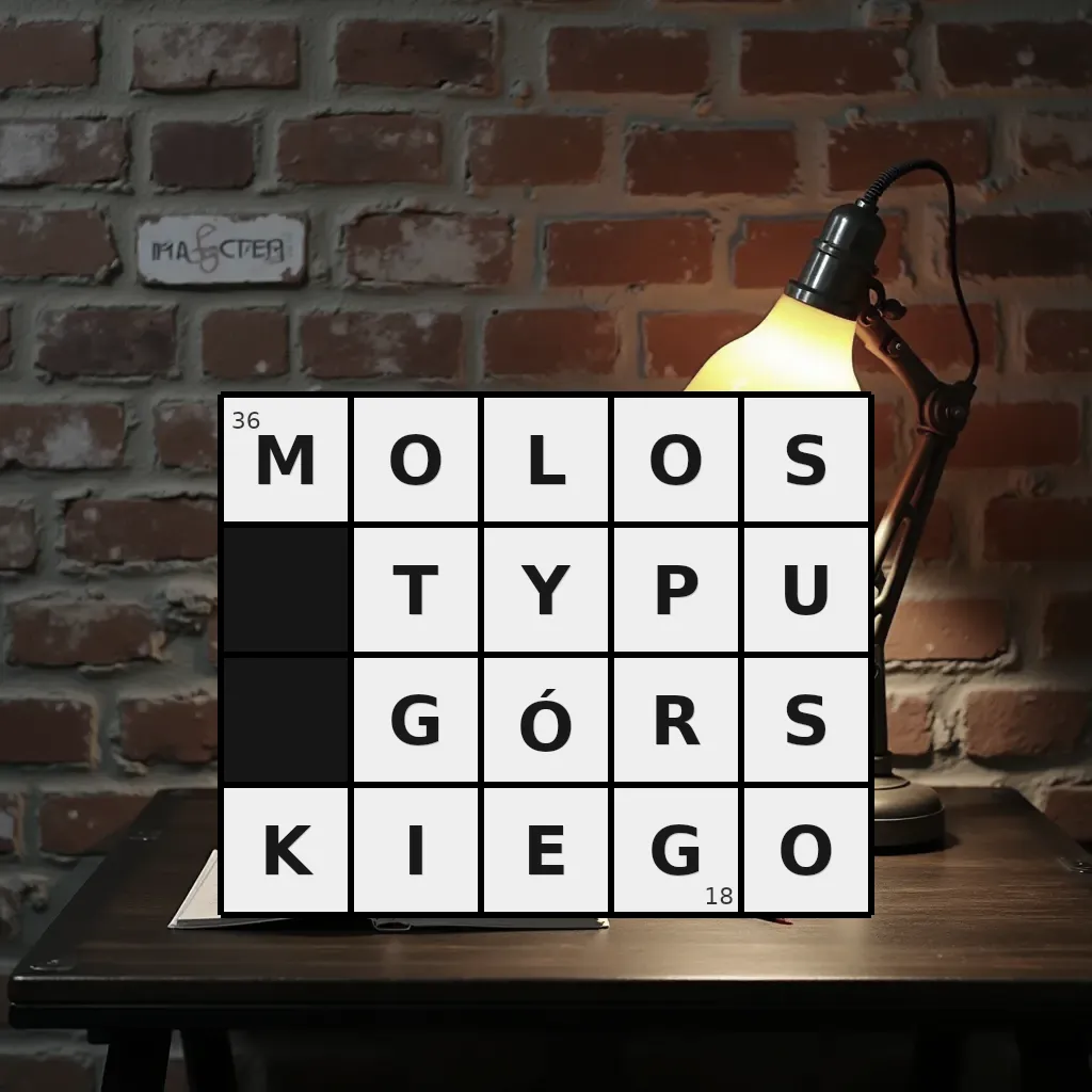 Słowo „molos typu górskiego” ma 18 znaków (bez spacji i łączników).