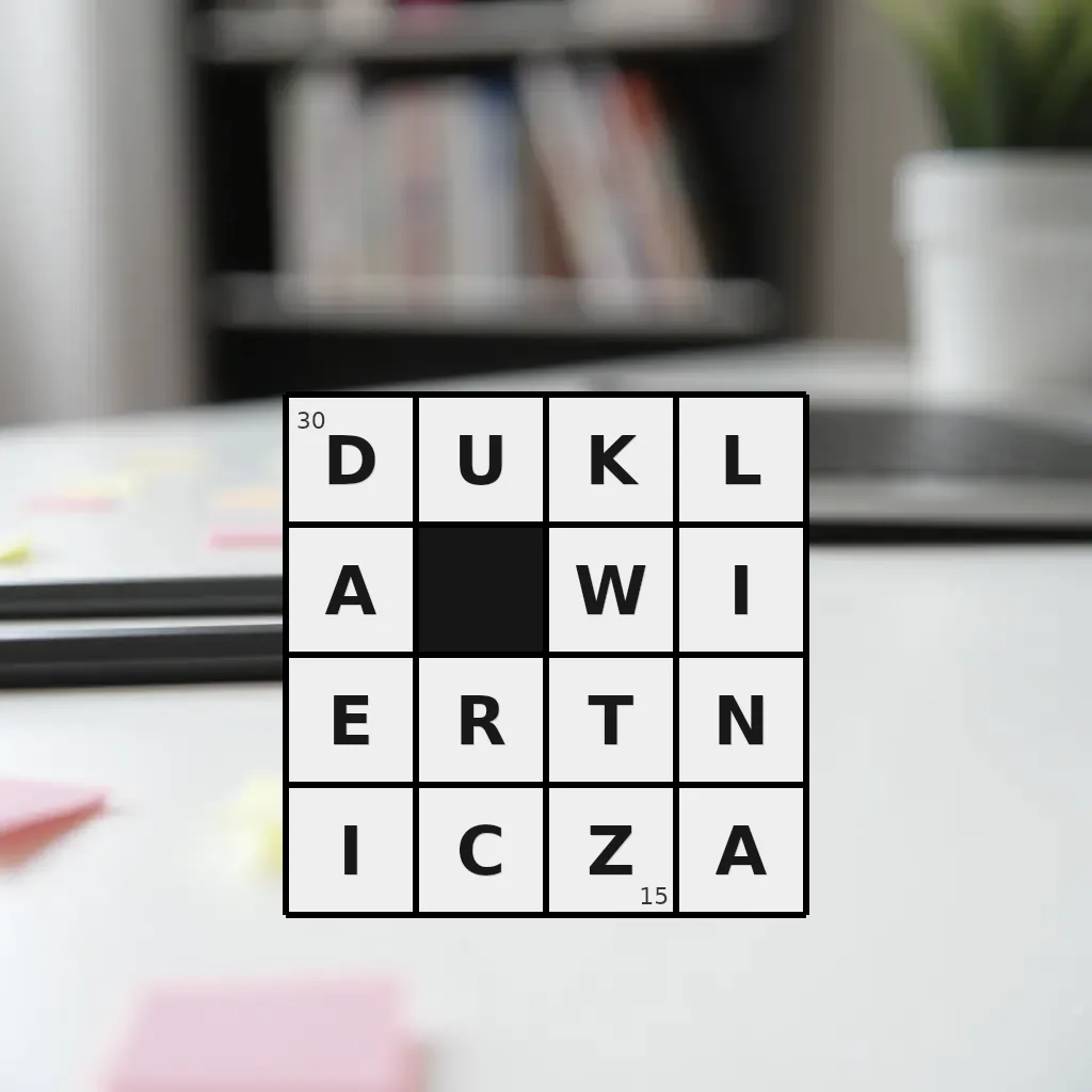 Zawiera litery: A, A, C, D, E, I, I, K, L, N, R, T, U, W, Z