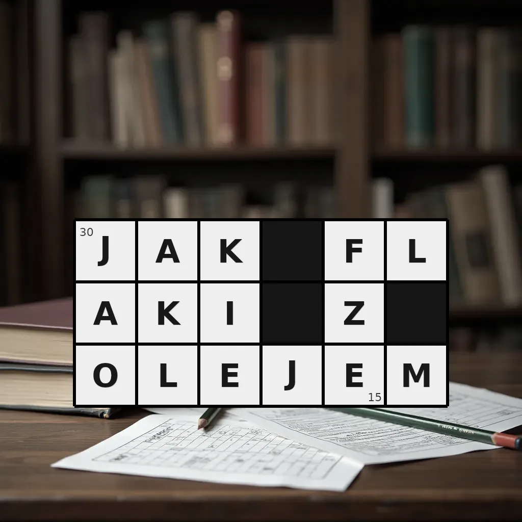 Zawiera litery: A, A, E, E, F, I, J, J, K, K, L, L, M, O, Z