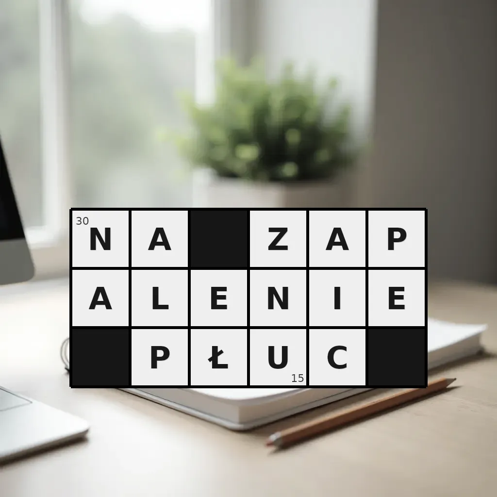 Słowo „na zapalenie płuc” ma 15 znaków (bez spacji i łączników).