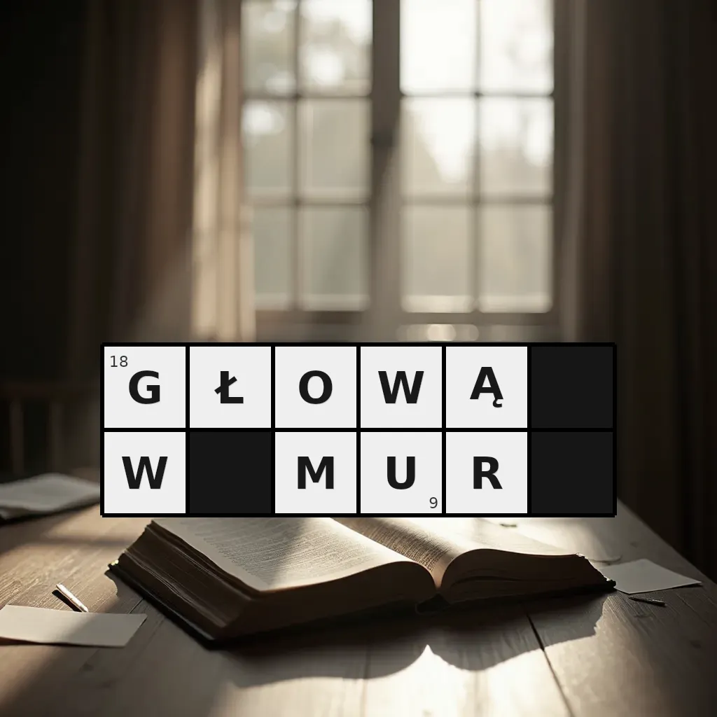 Słowo „głową w mur” ma 9 znaków (bez spacji i łączników).