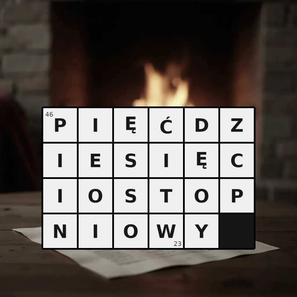 Słowo „pięćdziesięciostopniowy” ma 23 znaki (bez spacji i łączników).
