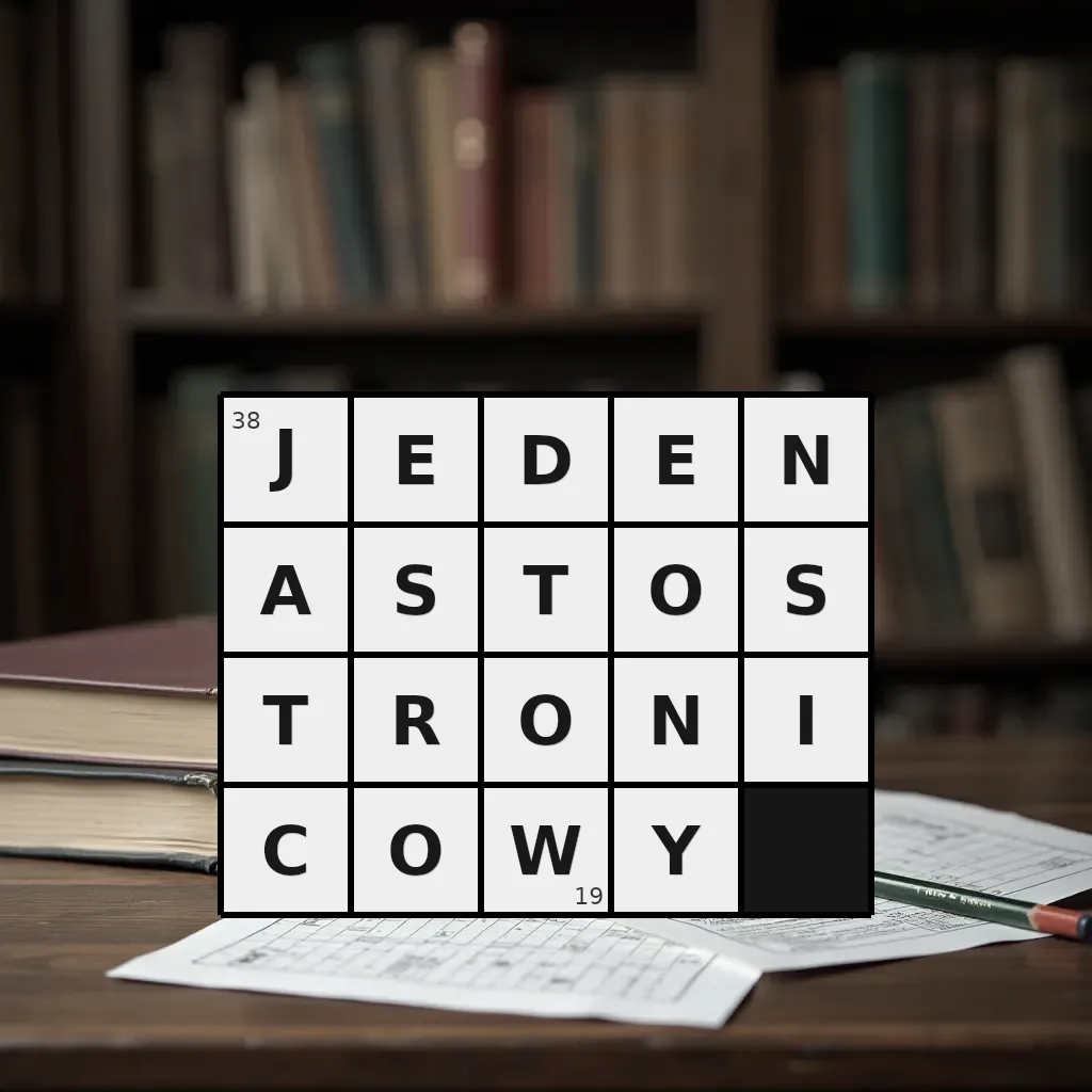 Zawiera litery: A, C, D, E, E, I, J, N, N, O, O, O, R, S, S, T, T, W, Y