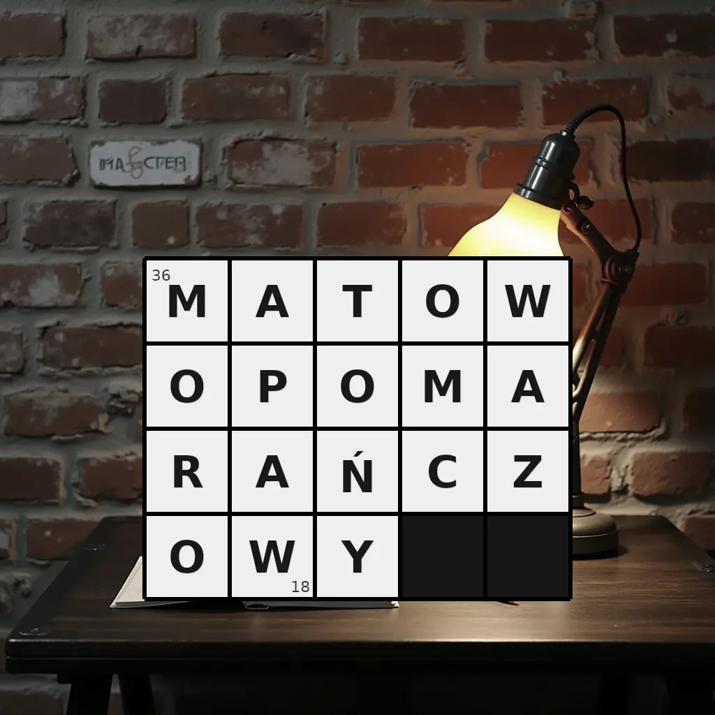Zawiera litery: A, A, A, C, M, M, O, O, O, O, P, R, T, W, W, Y, Z, Ń