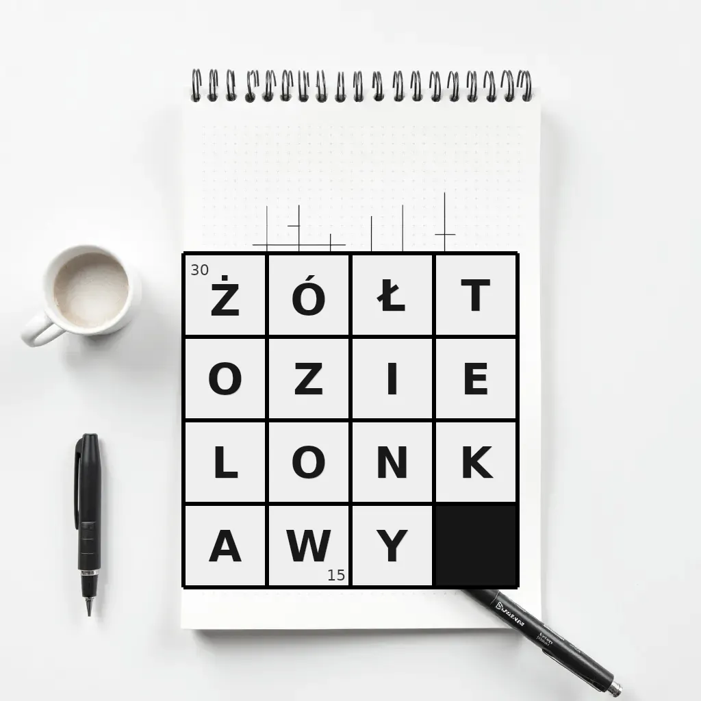 Zawiera litery: A, E, I, K, L, N, O, O, T, W, Y, Z, Ó, Ł, Ż