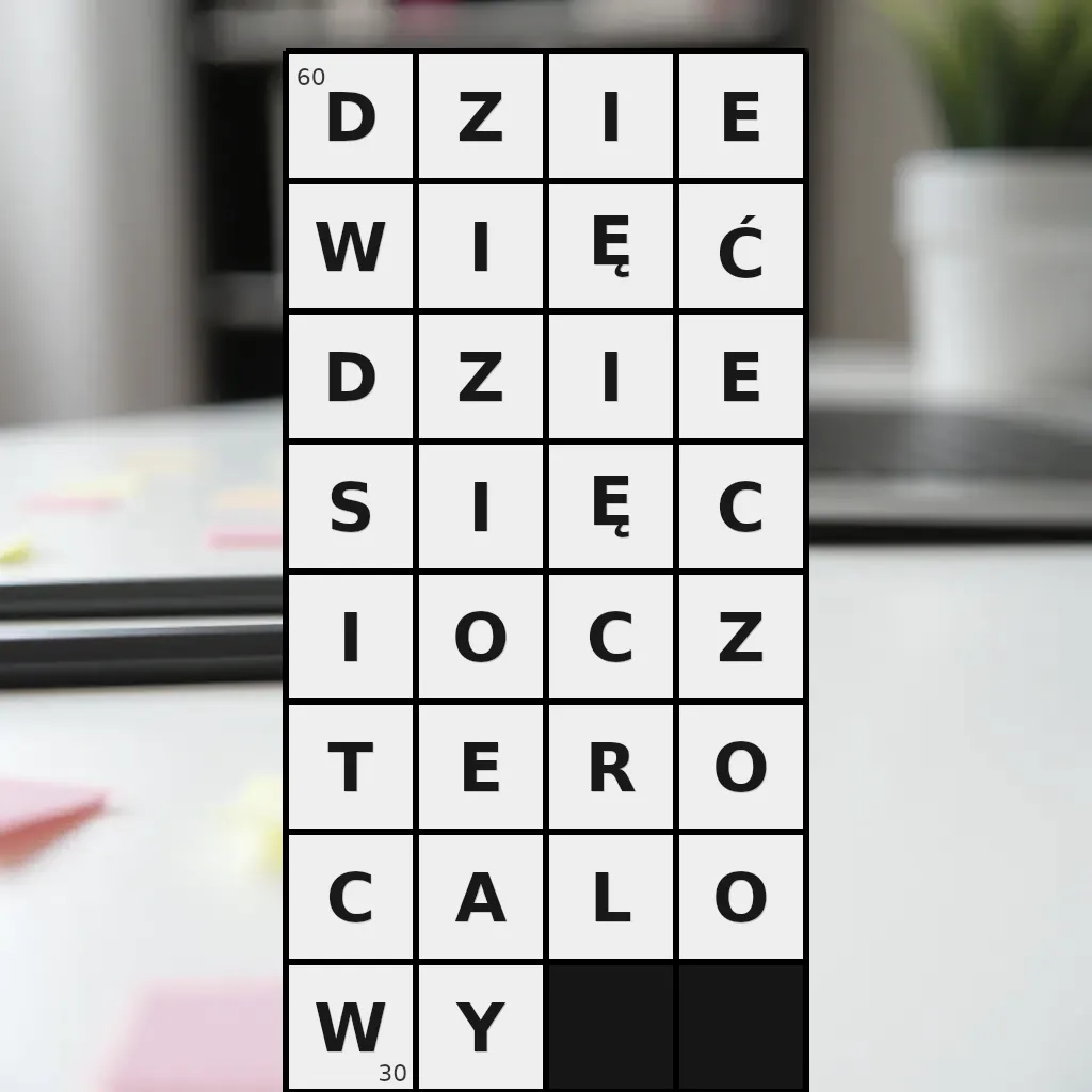 - dziewięćdziesięciocalowy — 24 znaki