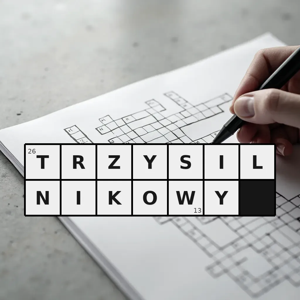 Słowo „trzysilnikowy” ma 13 znaków (bez spacji i łączników).