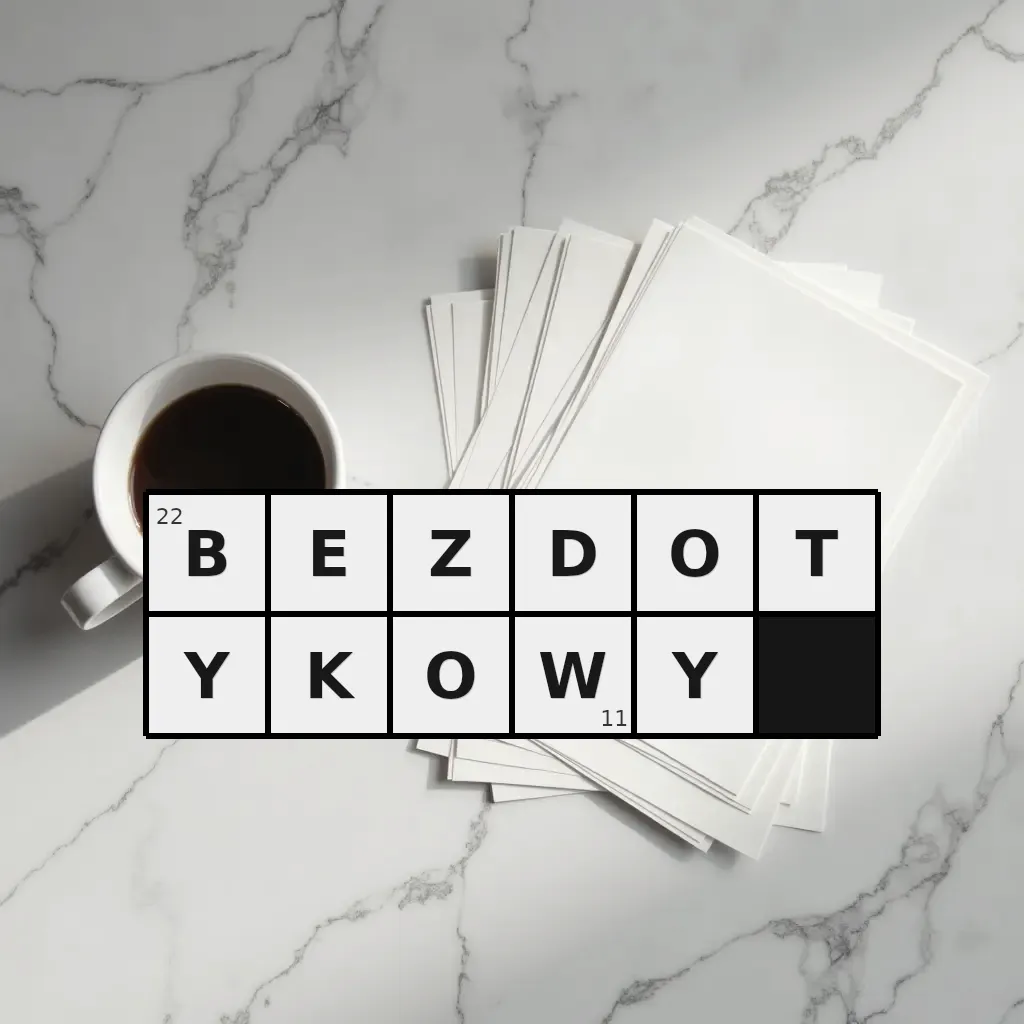 Słowo „bezdotykowy” ma 11 znaków (bez spacji i łączników).