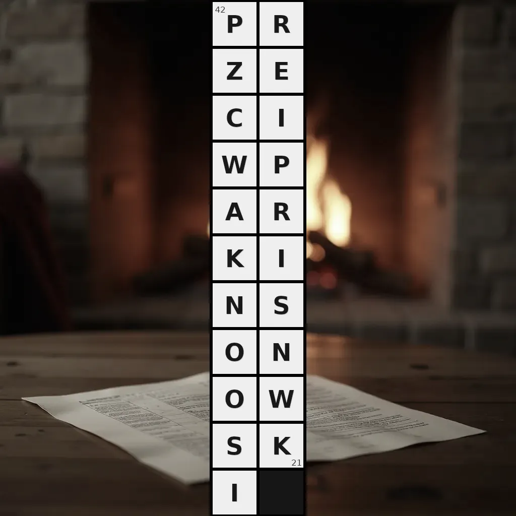 Zawiera litery: A, C, E, I, I, I, K, K, N, N, O, O, P, P, R, R, S, S, W, W, Z