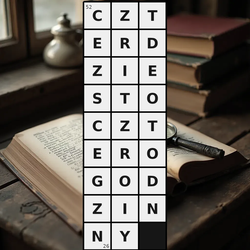 Zawiera litery: C, C, D, D, E, E, E, G, I, I, N, N, O, O, O, R, R, S, T, T, T, Y, Z, Z, Z, Z