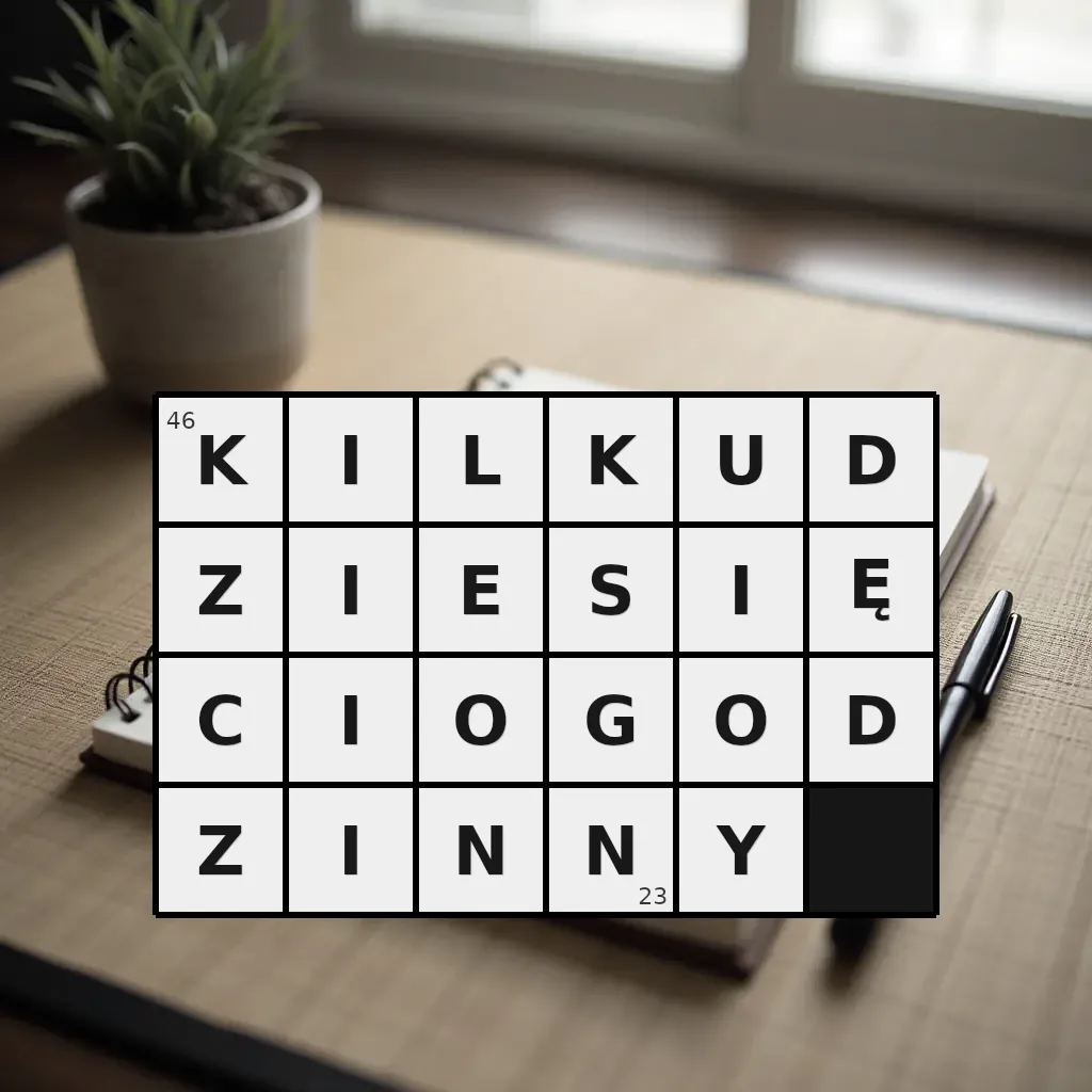 Słowo „kilkudziesięciogodzinny” ma 23 znaki (bez spacji i łączników).