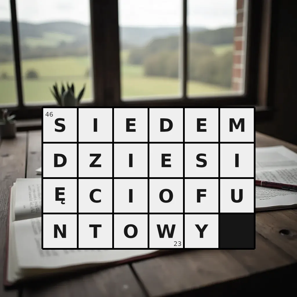 Słowo „siedemdziesięciofuntowy” ma 23 znaki (bez spacji i łączników).