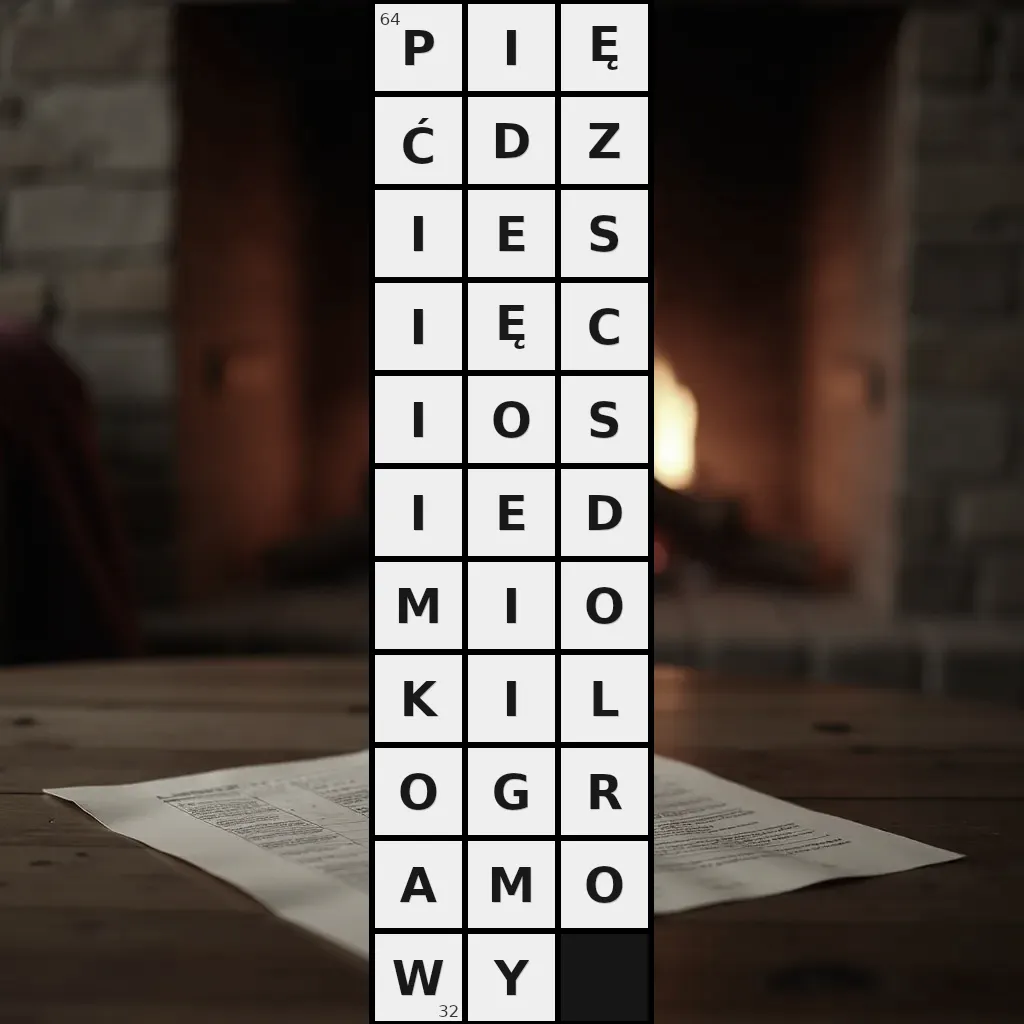 Zawiera litery: A, C, D, D, E, E, G, I, I, I, I, I, I, I, K, L, M, M, O, O, O, O, P, R, S, S, W, Y, Z, Ć, Ę, Ę