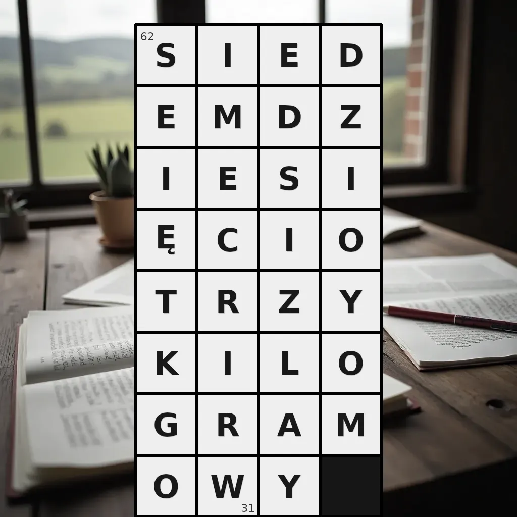 Słowo „siedemdziesięciotrzykilogramowy” ma 31 znak (bez spacji i łączników).