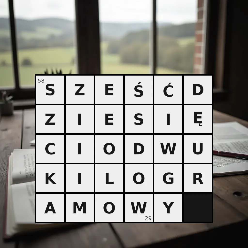 Słowo „sześćdziesięciodwukilogramowy” ma 29 znaków (bez spacji i łączników).