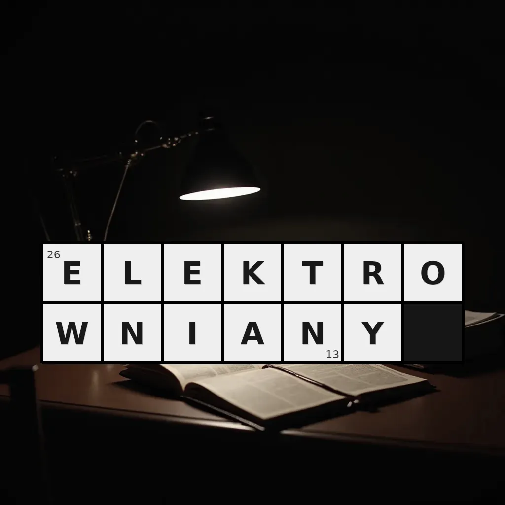 Słowo „elektrowniany” ma 13 znaków (bez spacji i łączników).