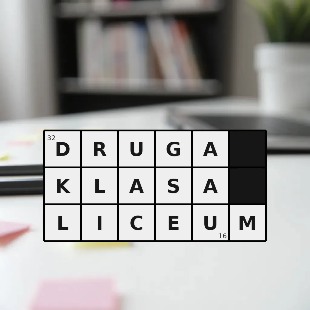 Słowo „druga klasa liceum” ma 16 znaków (bez spacji i łączników).