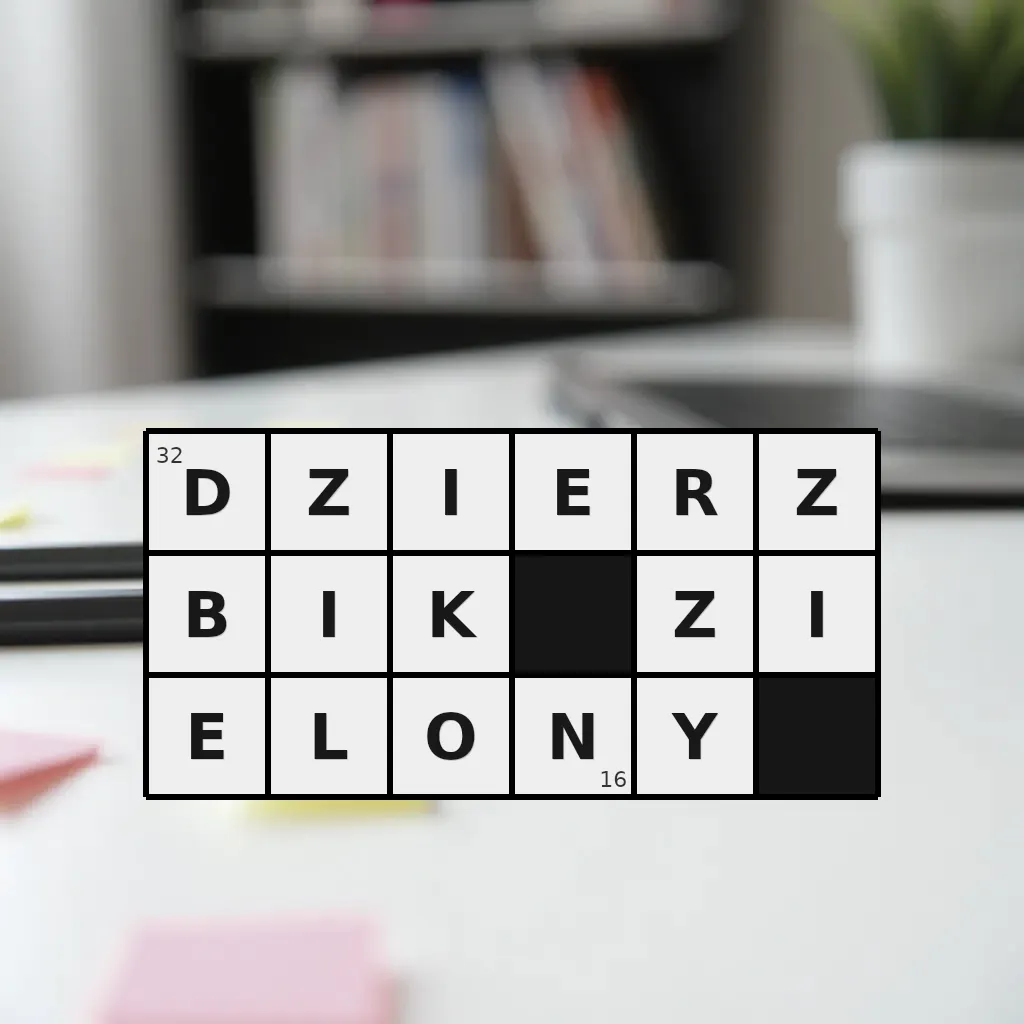 Słowo „dzierzbik zielony” ma 16 znaków (bez spacji i łączników).