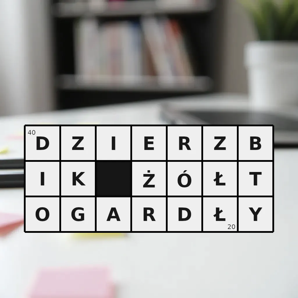Zawiera litery: A, B, D, D, E, G, I, I, K, O, R, R, T, Y, Z, Z, Ó, Ł, Ł, Ż