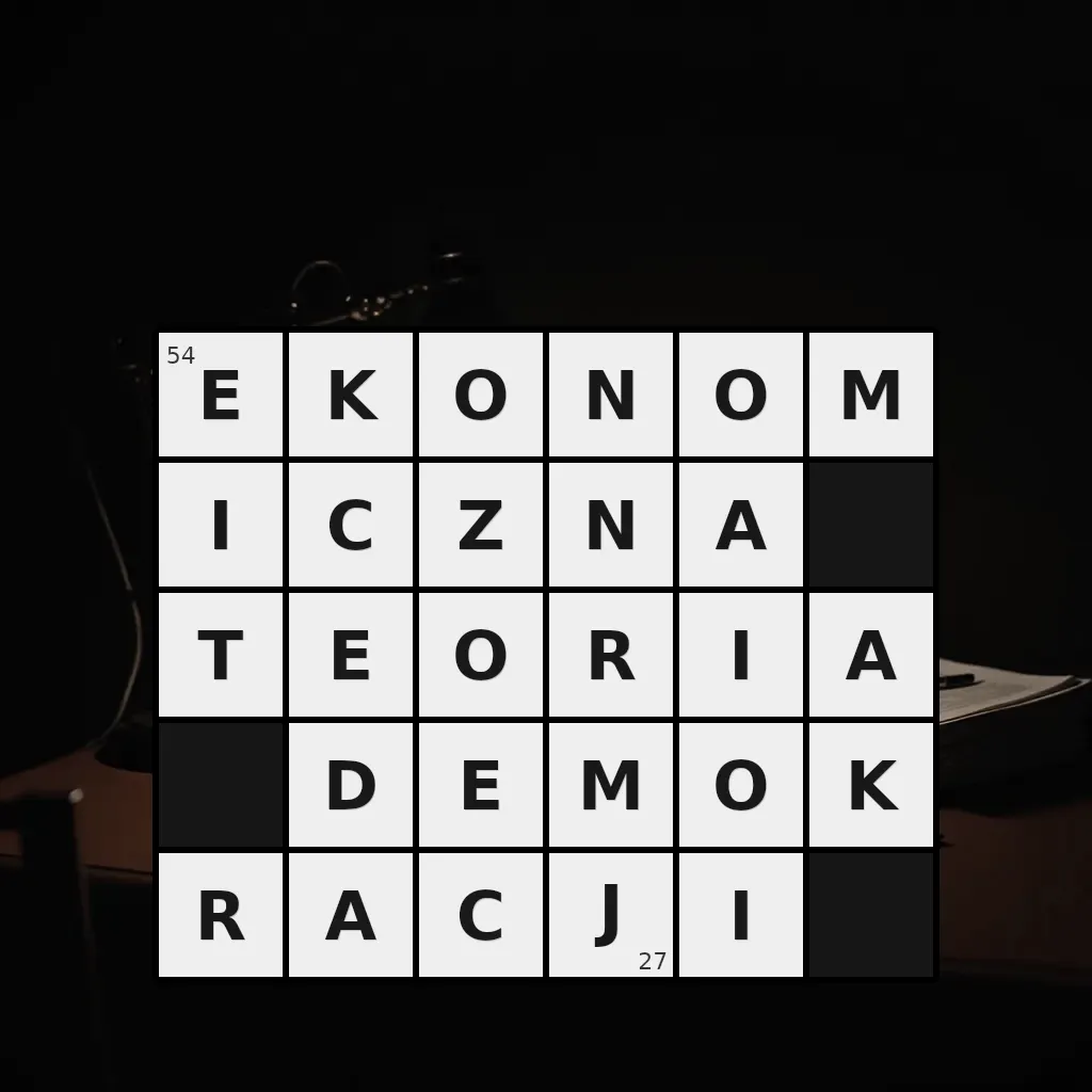 Słowo „ekonomiczna teoria demokracji” ma 27 znaków (bez spacji i łączników).