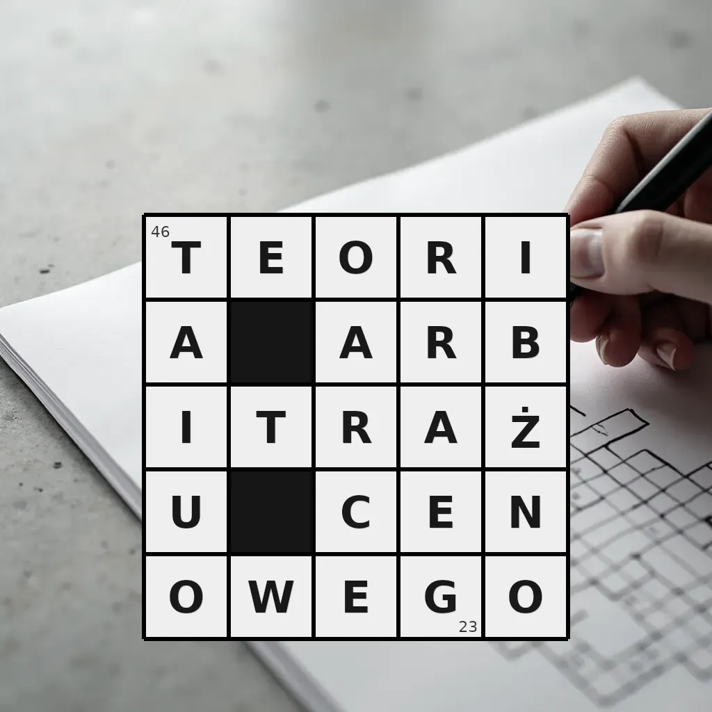 Słowo „teoria arbitrażu cenowego” ma 23 znaki (bez spacji i łączników).