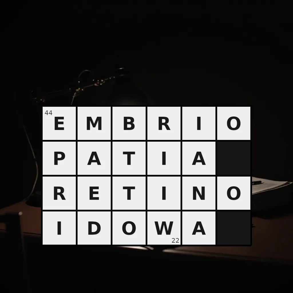 Słowo „embriopatia retinoidowa” ma 22 znaki (bez spacji i łączników).