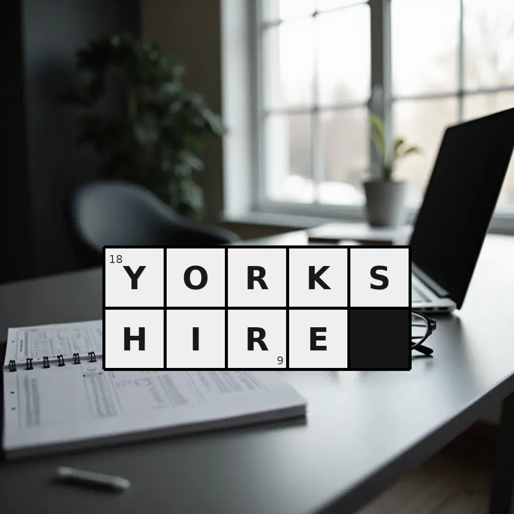 Słowo „yorkshire” ma 9 znaków (bez spacji i łączników).