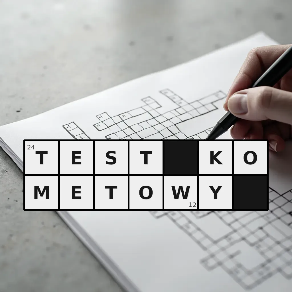 Słowo „test kometowy” ma 12 znaków (bez spacji i łączników).
