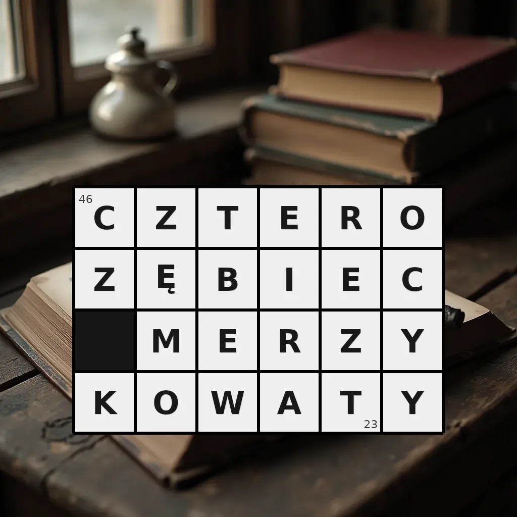 Słowo „czterozębiec merzykowaty” ma 23 znaki (bez spacji i łączników).
