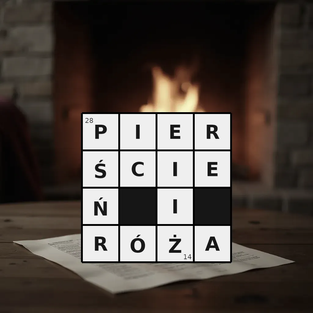 Słowo „pierścień i róża” ma 14 znaków (bez spacji i łączników).