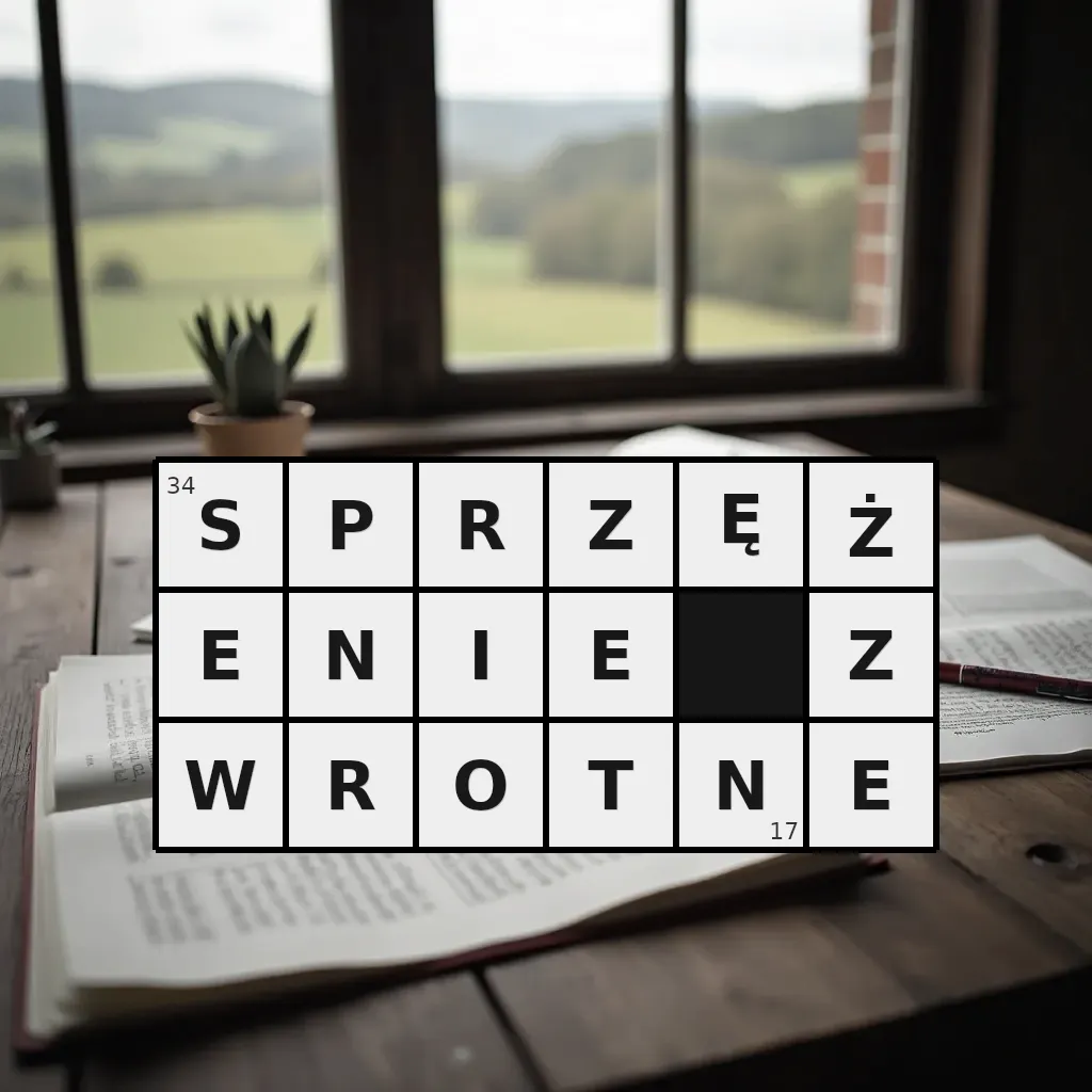 Słowo „sprzężenie zwrotne” ma 17 znaków (bez spacji i łączników).