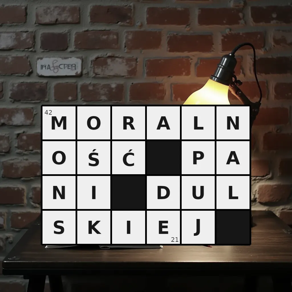 Słowo „moralność pani dulskiej” ma 21 znak (bez spacji i łączników).