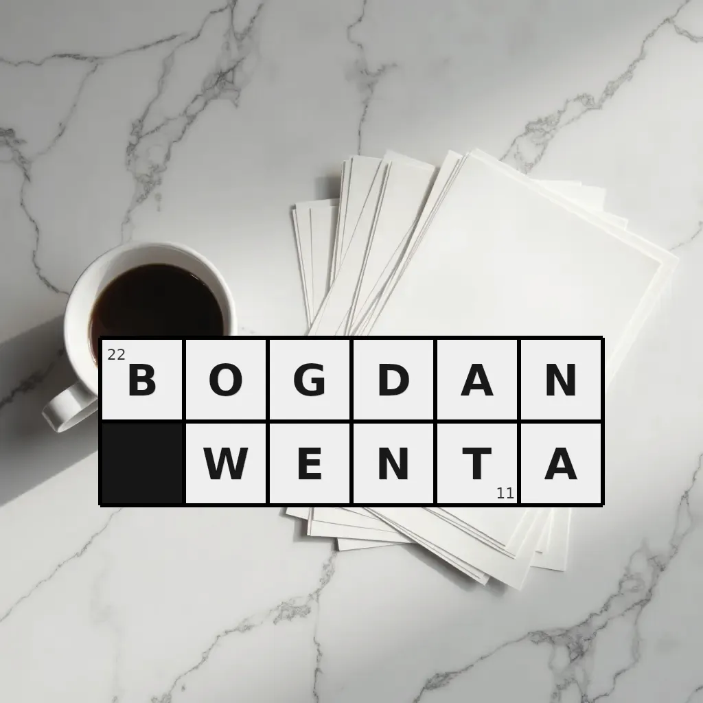 Słowo „bogdan wenta” ma 11 znaków (bez spacji i łączników).