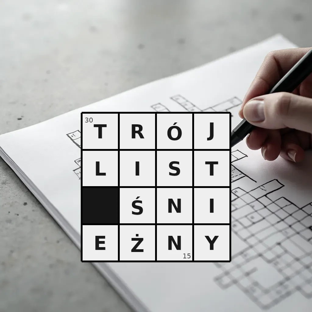 Słowo „trójlist śnieżny” ma 15 znaków (bez spacji i łączników).