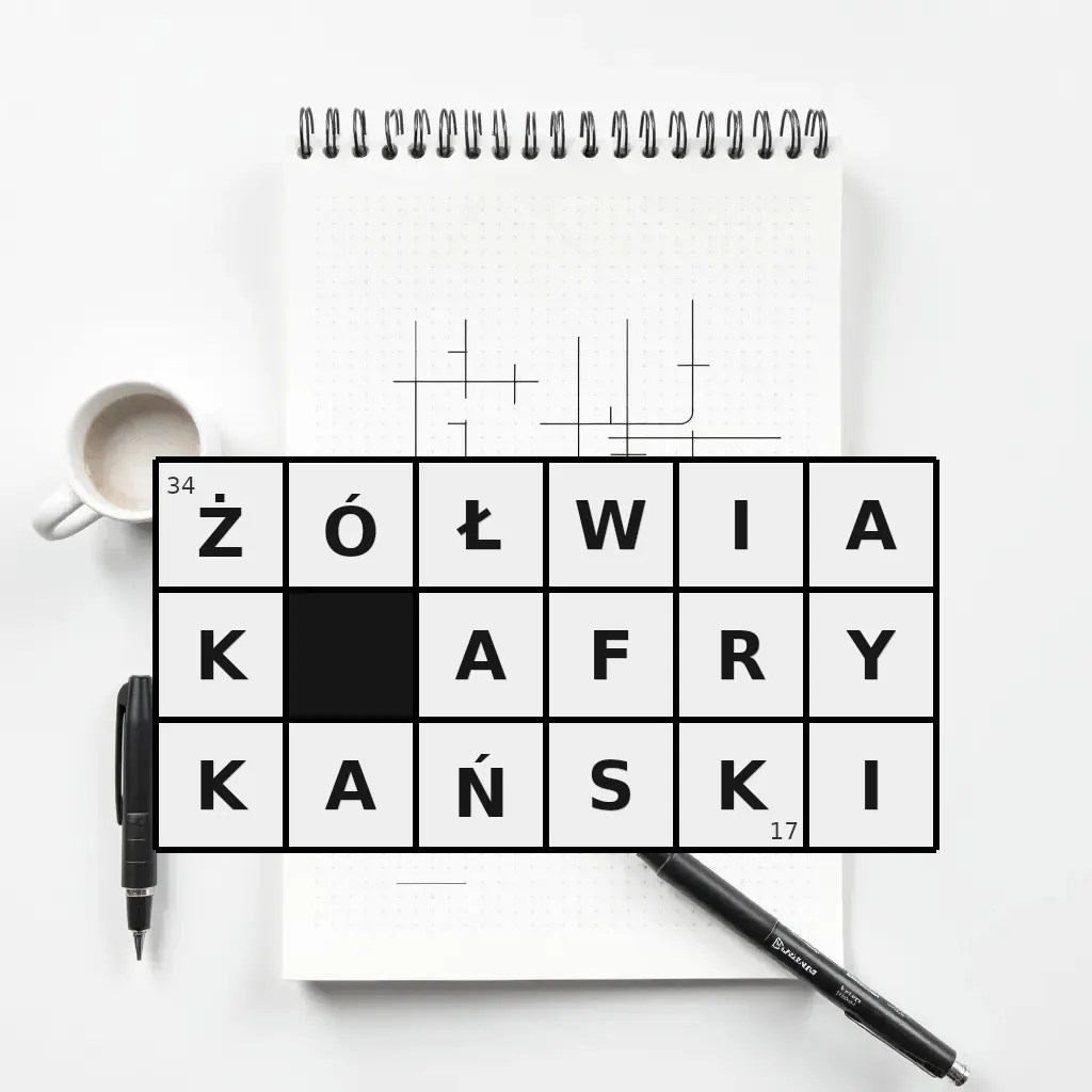 Słowo „żółwiak afrykański” ma 17 znaków (bez spacji i łączników).