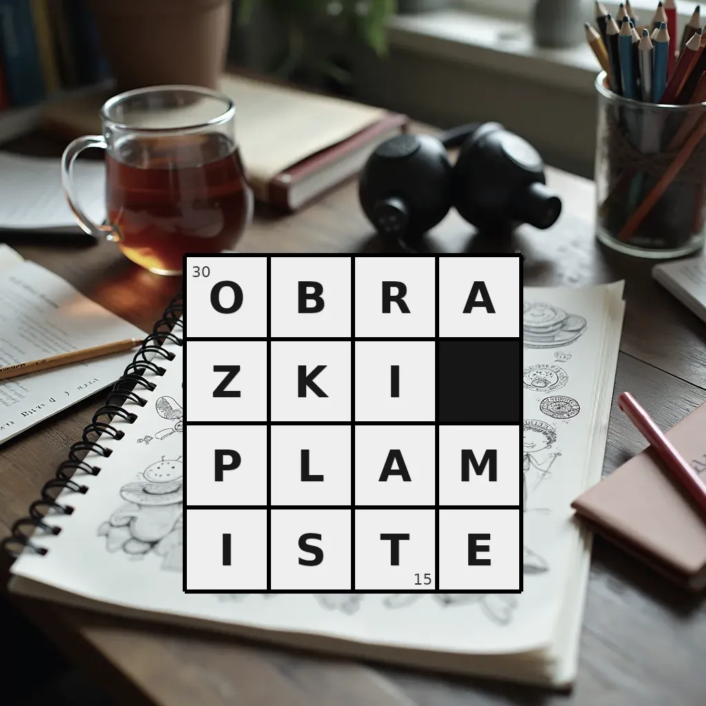 Słowo „obrazki plamiste” ma 15 znaków (bez spacji i łączników).