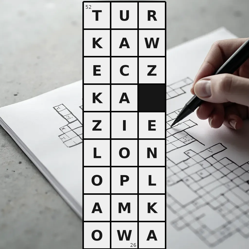 Słowo „turkaweczka zielonoplamkowa” ma 26 znaków (bez spacji i łączników).