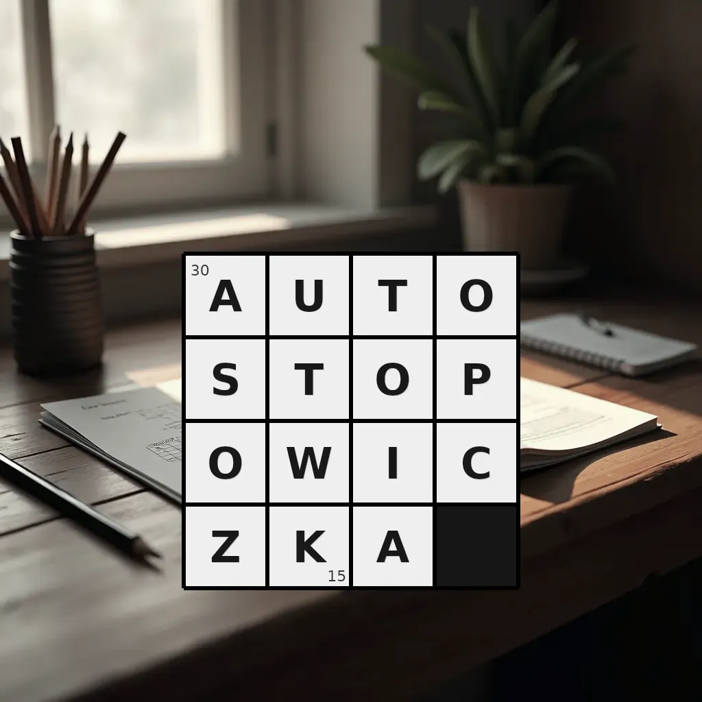Słowo „autostopowiczka” ma 15 znaków (bez spacji i łączników).