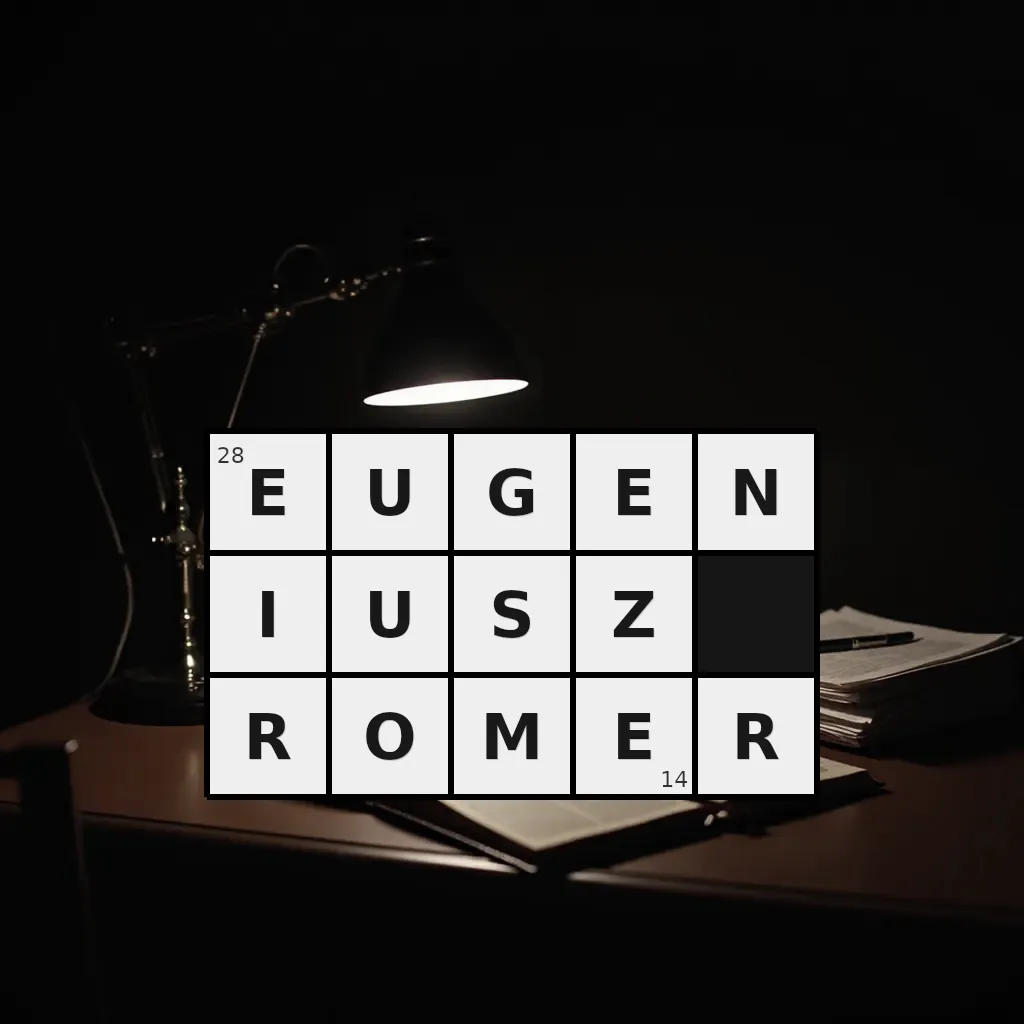 Słowo „eugeniusz romer” ma 14 znaków (bez spacji i łączników).