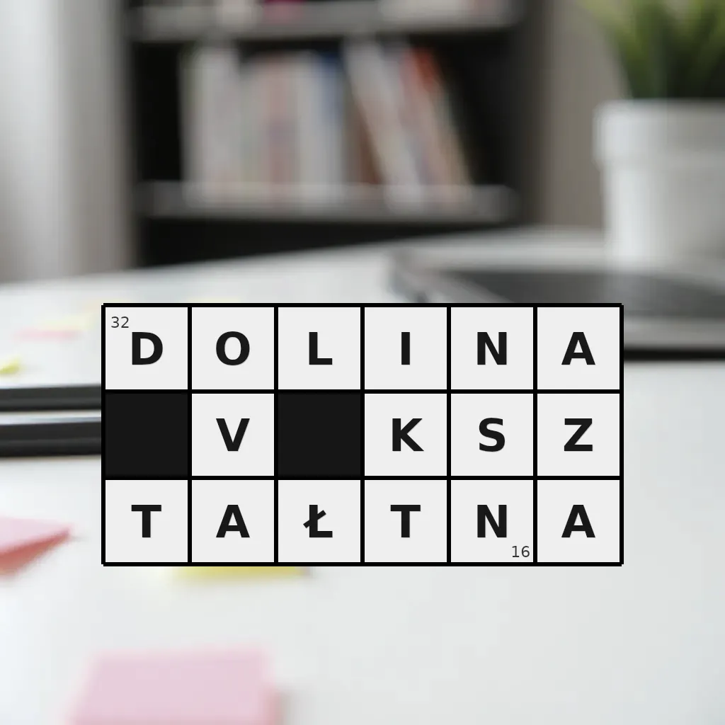 Słowo „dolina v-kształtna” ma 16 znaków (bez spacji i łączników).