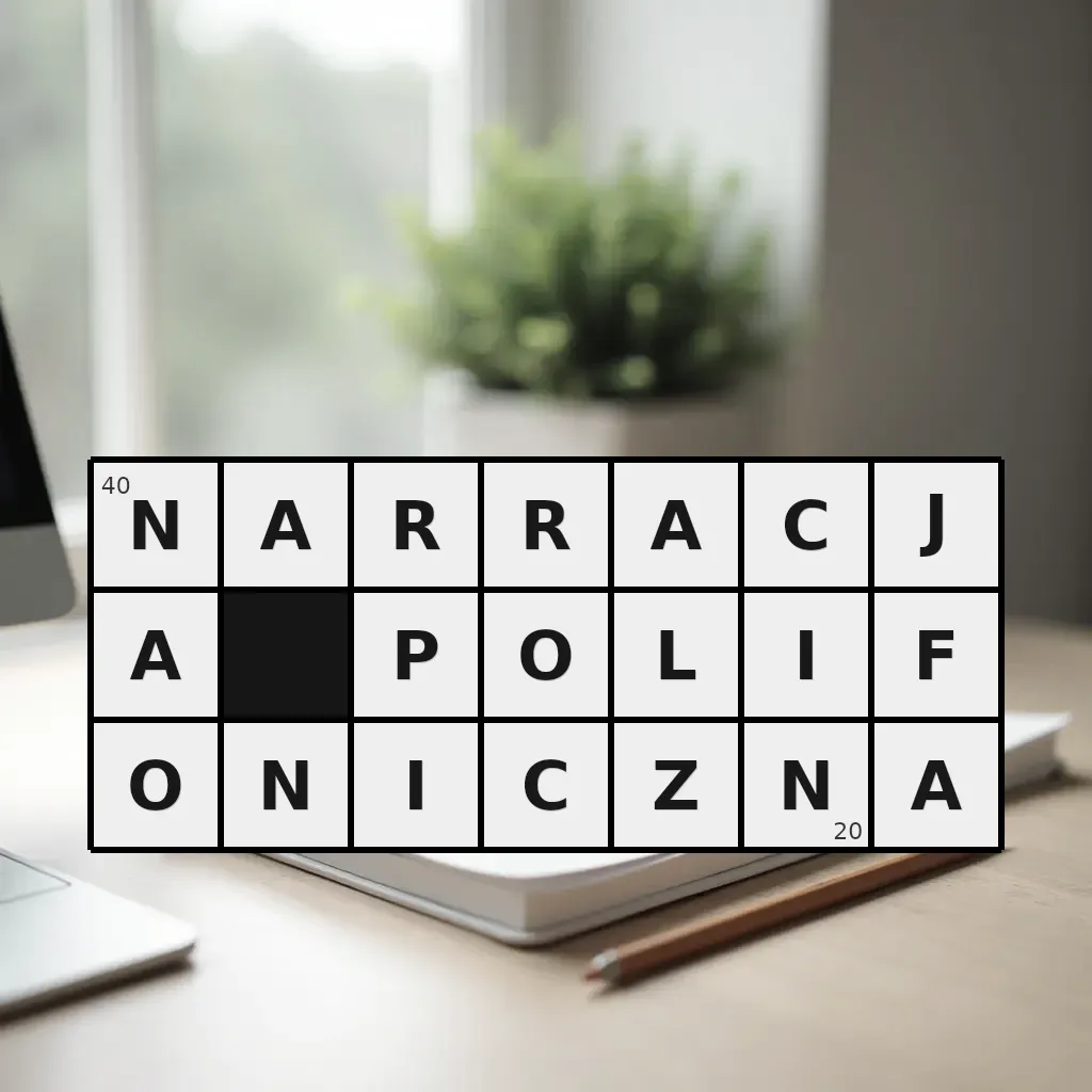 Słowo „narracja polifoniczna” ma 20 znaków (bez spacji i łączników).
