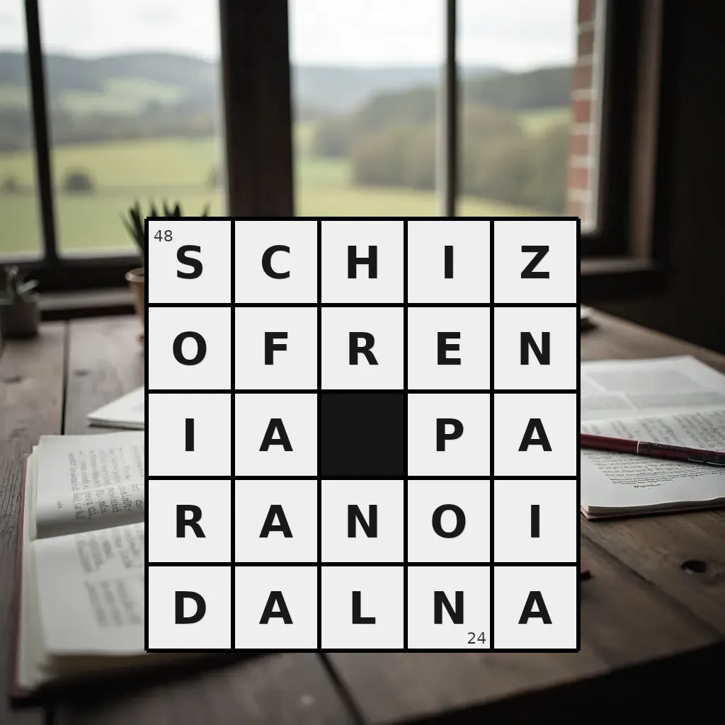 Słowo „schizofrenia paranoidalna” ma 24 znaki (bez spacji i łączników).