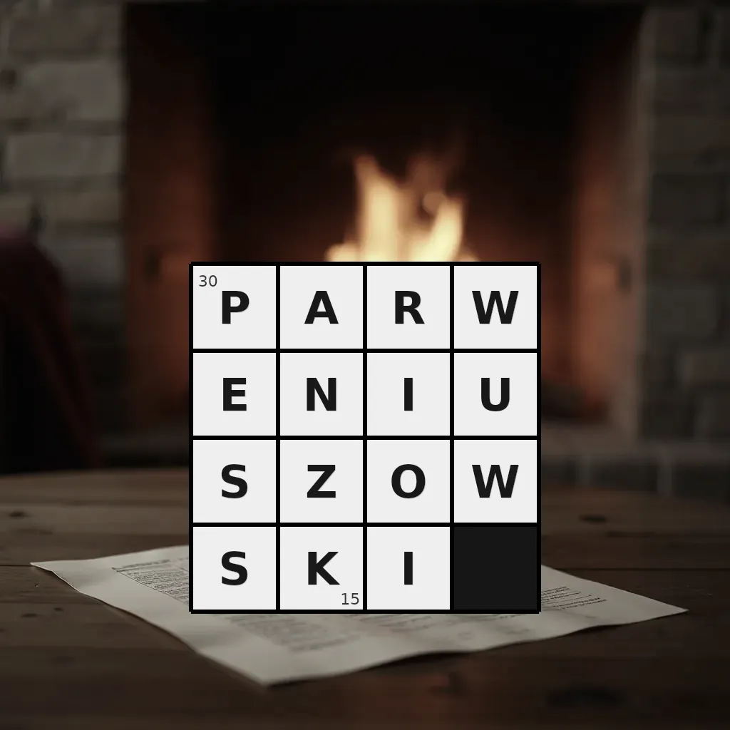 Zawiera litery: A, E, I, I, K, N, O, P, R, S, S, U, W, W, Z