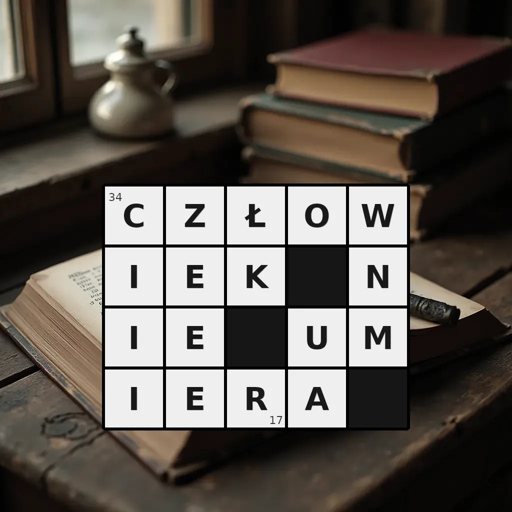 Słowo „człowiek nie umiera” ma 17 znaków (bez spacji i łączników).