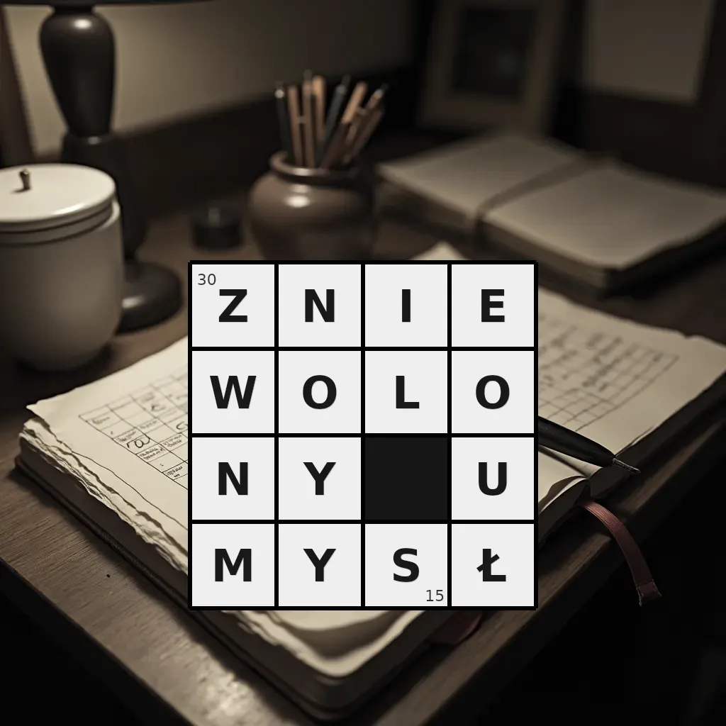 Słowo „zniewolony umysł” ma 15 znaków (bez spacji i łączników).
