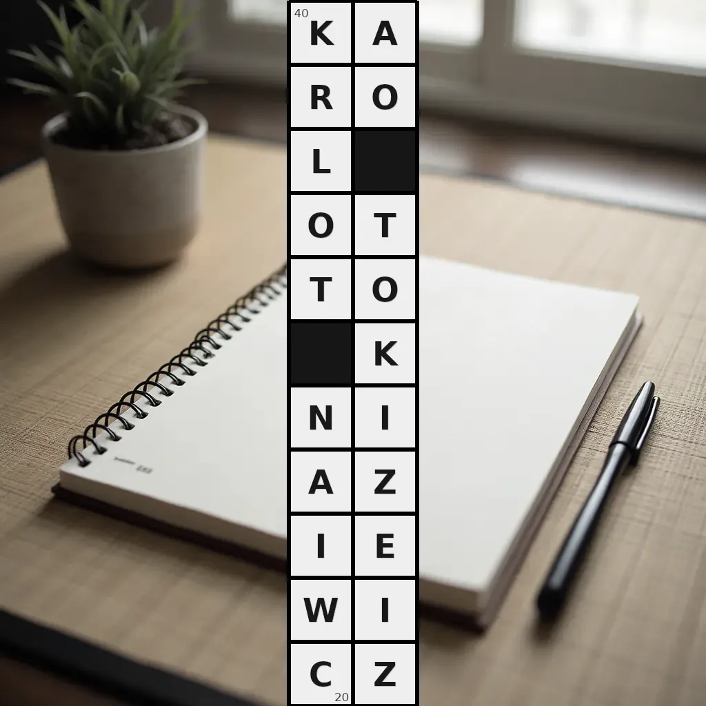Słowo „karol otto kniaziewicz” ma 20 znaków (bez spacji i łączników).