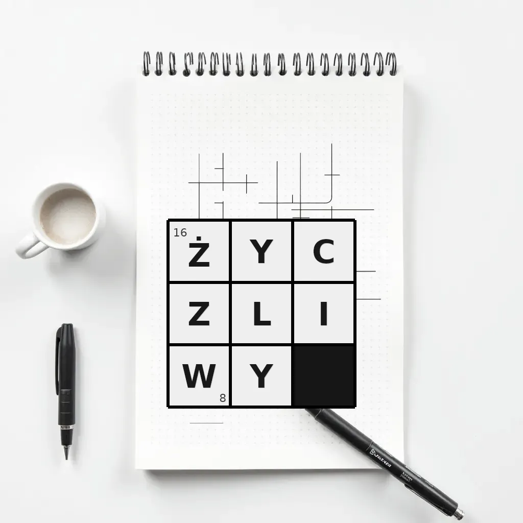 Słowo „życzliwy” ma 8 znaków (bez spacji i łączników).