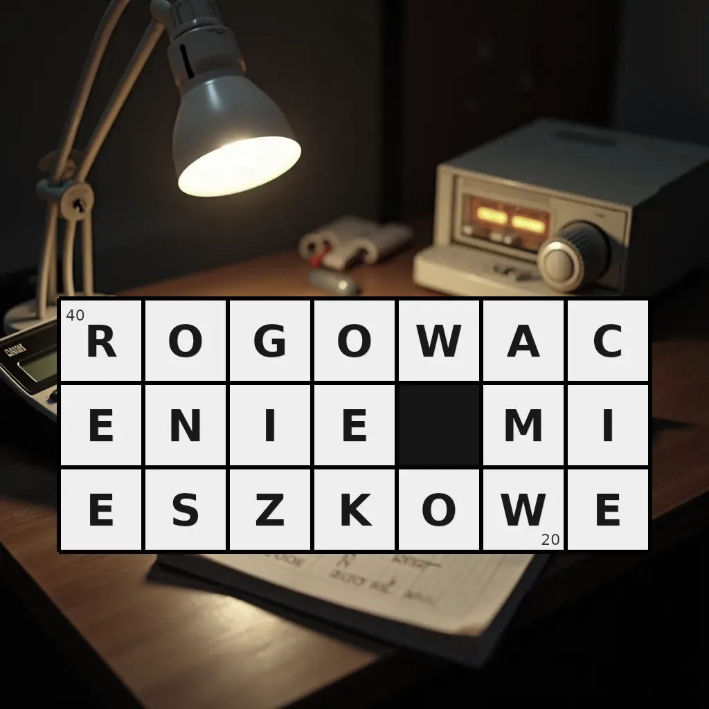 Słowo „rogowacenie mieszkowe” ma 20 znaków (bez spacji i łączników).
