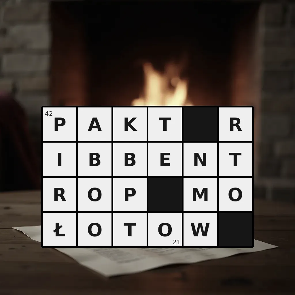 Słowo „pakt ribbentrop mołotow” ma 21 znak (bez spacji i łączników).